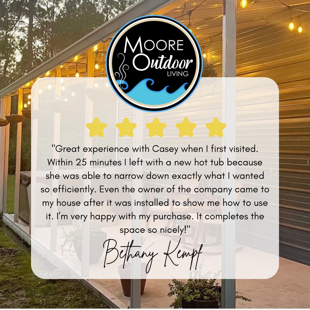 At Moore Outdoor Living, we stand behind every product and service we offer—from custom outdoor kitchens and portable hot tubs to our retail and care solutions. We’re committed to delivering top-quality products and exceptional customer service. Our customers’ satisfaction is our top priority, and we’re proud to help create amazing outdoor spaces. But don’t just take our word for it! Check out their experiences and see why Moore Outdoor Living is the trusted choice for your outdoor needs!